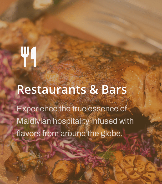 Savor the world on your plate and indulge in perfectly crafted drinks at Canareef Resort. Our restaurant and bars offer an intoxicating blend of gastronomic delights and refreshing beverages set against the breathtaking backdrop of the Maldives. Whether you seek a casual beachside cocktail, a romantic dinner under the stars, or lively evening entertainment, our resort promises memorable moments of indulgence and excitement.